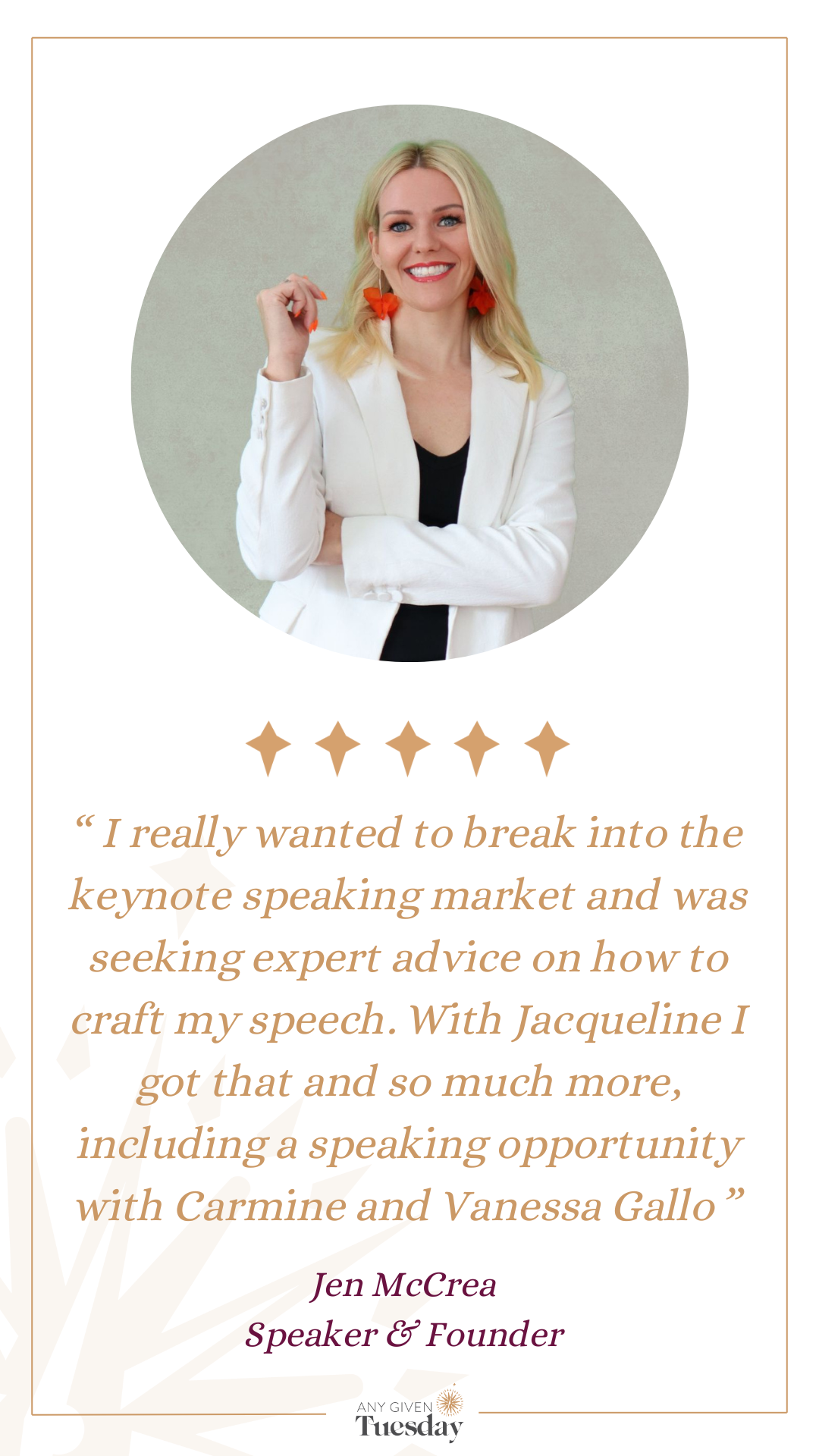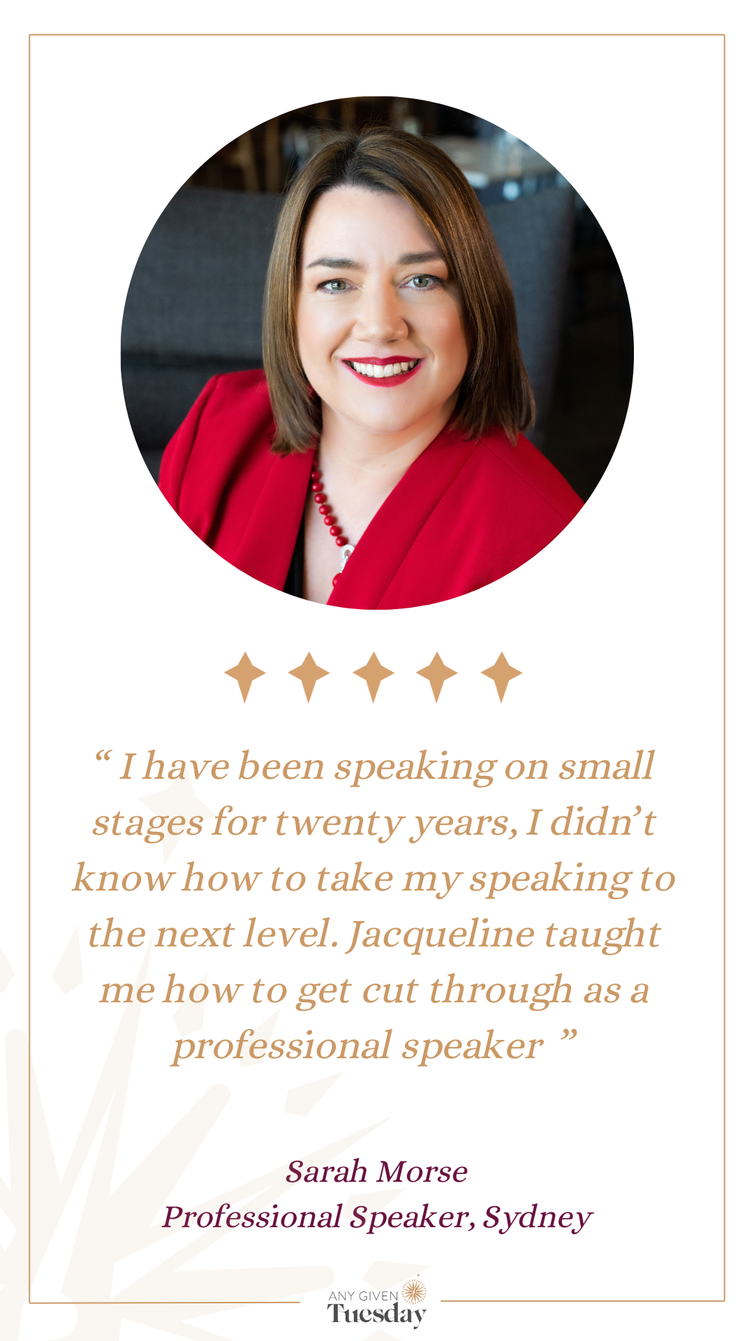 Jacqueline Brooker (nee Nagle) is an established Speaking & Strategic Communications Coach, recognised for her comprehensive approach that merges over eight years of speaker coaching with a robust entrepreneurial background. Unlike most speaking coaches, Jacqueline holds the prestigious global designation of Certified Speaking Professional, and has transformed the speaking abilities of thousands across Australia and the USA. She specialises in helping speakers refine their delivery, structure, and persuasive power, which in turn dramatically boosts their profile, and both their speaking and business revenues.